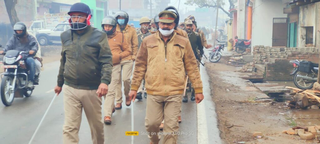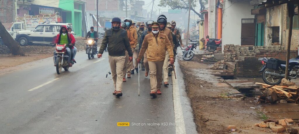 आपको बताते चलें कि विधानसभा चुनाव के मद्देनजर चुनाव आयोग के निर्देशानुसार आदर्श आचार संहिता का कड़ाई से पालन कराने हेतु गौरा विधानसभा में हथियागढ़ बाजार अति संवेदनशील क्षेत्र सहित अधिकांश बाजारों में जाकर छपिया एस. एस. आई. सुरेश कुमार मिश्रा एवम् चौकी प्रभारी हथियागढ़ दिलीप कुमार उपाध्याय, दीपक आरक्षी,दीवान आरक्षी धर्मेंद्र यादव, हरिपाल वर्मा, मनीष चौहान सहित पुलिस बल के साथ उप जिला अधिकारी मनकापुर कृति प्रकाश भारती तथा क्षेत्राधिकारी मनकापुर संजय तलवार के नेतृत्व में आज अर्ध सैनिक बलों के साथ फ्लैग मार्च कर मतदाताओं को शांतिपूर्वक व निर्भीकता पूर्वक ,निष्पक्षता के साथ मतदान करने का किया अपील साथ ही साथ चौराहों व रास्तों में आने जाने वाले चौपहिया वाहन की सघन चेकिंग कर सुरक्षा व्यवस्था का जायजा लिया वही दूसरी ओर सड़कों पर पुलिस की टुकड़ियों को देखकर लोगों ने अपने आप को सुरक्षित समझा।