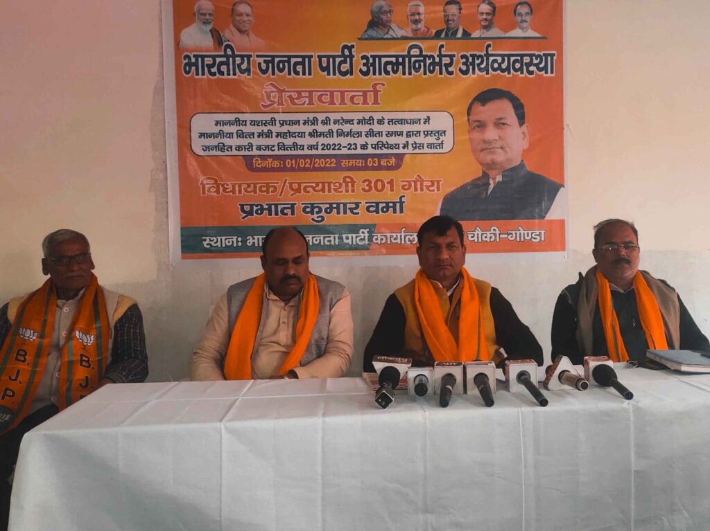 बभनजोत गोंडा। मंगलवार को क्षेत्रीय विधायक प्रभात कुमार वर्मा ने बभनजोत ब्लॉक अंतर्गत गौरा चौकी पार्टी कार्यालय में प्रेस कॉन्फ्रेंस की । इस दौरान छपिया ब्लॉक सहित बभनजोत ब्लाक क्षेत्र के अनेक मीडिया कर्मी मौके पर मौजूद रहे । प्रधानमंत्री नरेंद्र मोदी के तत्वाधान में वित्तमंत्री निर्मला सीतारमण द्वारा प्रस्तुत लाभकारी बजट 2022-23 एवं आगामी वर्चुवल रैली को लेकर 301 गौरा के बीजेपी विधायक द्वारा प्रेस कांफ्रेंस का आयोजन किया गया । इस दौरान विधायक ने सरकार द्वारा चलाए गए पांच वर्ष के कार्यकाल में जनकल्याणकारी योजनाओं के बारे में जानकारी दी । उन्होंने कहा कि उनकी सरकार ने अपने कार्यकाल में सड़क , विजली , पानी , स्वास्थ्य , शिक्षा के मामले में बेहतर कार्य किये है ।