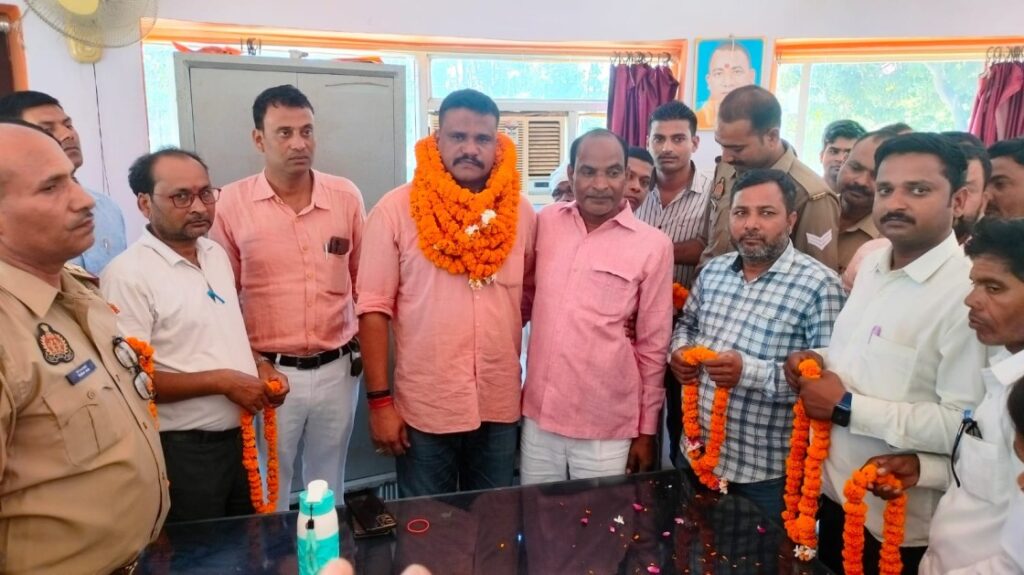 प्रभारी निरीक्षक की हुई विदाई, फूल माला पहनाकर और भीनी भीनी आंखों से विदाई की गई