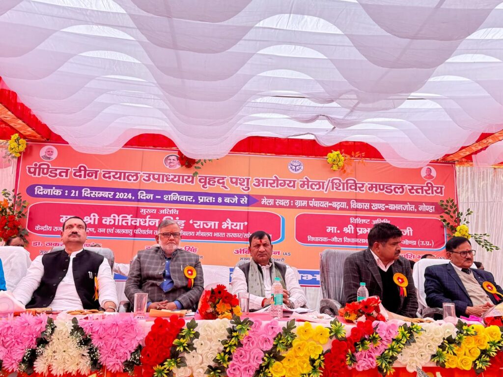 बभनजोत गोंडा। पंडित दीनदयाल उपाध्याय वृहद पशु आरोग्य मेला मंडल स्तरीय शिविर का आयोजन ग्राम पंचायत बढ़या में किया गया। इस मेले का शुभारंभ गौरा विधायक प्रभात कुमार वर्मा ने किया।इस मेले में काफी संख्या में किसानों की उपस्थिति दिखाई पड़ी। मेले में 14 स्टाल लगाए गए।जिसमे दवा वितरण,पशुपालक पंजीकरण,कृत्रिम,गर्भधान,पशु चिकित्सा, सामूहिक दवापान,बधियाकरण,टीकाकरण,शल्य चिकित्सा,बांझपन,पशु, टैगिंग,किसान क्रेडिट कार्ड,महिला सशक्तिकरण,इस प्रकार से कई स्टाल लगाए गए,इसमें किसानों ने अपना रजिस्ट्रेशन करवाया और नि:शुल्क दवा वितरण किया गया।