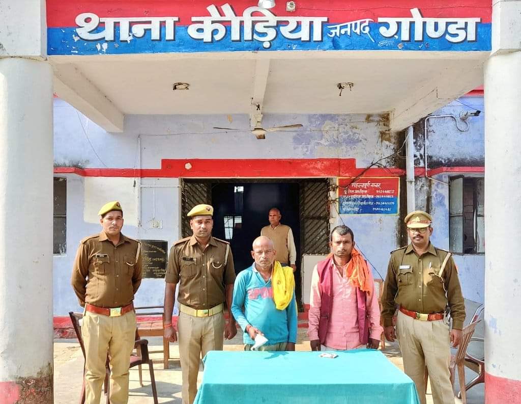 पुलिस अधीक्षक गोण्डा संतोष कुमार मिश्रा ने अपराध एंव अपराधियों के विरूद्ध चलाये जा रहे अभियान के तहत वांछित अभियुक्तों की जल्द से जल्द गिरफ्तारी करने हेतु जनपद के समस्त प्रभारी निरीक्षक/थानाध्यक्षों को कड़े निर्देश दिए थे।उक्त निर्देश के अनुक्रम में थाना कौड़िया पुलिस ने जानलेवा हमला करने के वांछित अभियुक्तों-01. रामेश्वर प्रसाद, 02. गुलाब चन्द्र को गिरफ्तार कर घटना में प्रयुक्त 01 अदद अवैध तमंचा 315 बोर मय 01 अदद खोखा कारतूस बरामद किया गया। उक्त अभियुक्तों ने दिनांक 10.11.2021 को जमीनी विवाद के चलते वादी राघवराम पुत्र राजिन्द्र प्रसाद नि0 ग्राम बौनापुर थाना कौड़िया जनपद गोण्डा व उसके परिजनों को गाली-गुप्ता देते हुए मारा-पीटा था तथा रामेश्वर प्रसाद ने जान से मारने की नियत से तमंचे से फायर कर दिया था। अभियुक्तों को वास्ते रिमांड माननीय न्यायालय रवाना किया गया।गिरफ्तार अभियुक्तगण-01. रामेश्वर प्रसाद उर्फ नंगू पुत्र दुर्गा प्रसाद नि0 ग्राम बौनापुर थाना कौड़िया जनपद गोण्डा।02. गुलाब चन्द्र उर्फ नान्ह शुक्ल पुत्र दुर्गा प्रसाद नि0 ग्राम बौनापुर थाना कौड़िया जनपद गोण्डा।पंजीकृत अभियोग-01. मु0अ0सं0-226/21, धारा 323,504,506,327,307,352,34 भादवि व 3/25 आर्म्स एक्ट थाना कौड़िया जनपद गोण्डा।बरामदगी-01. 01 अदद अवैध तमंचा 315 बोर मय 01 अदद खोखा कारतूस।गिरफ्तार कर्ता टीम-उ0नि0 सुरेश कुमार साहनी मय टीम।