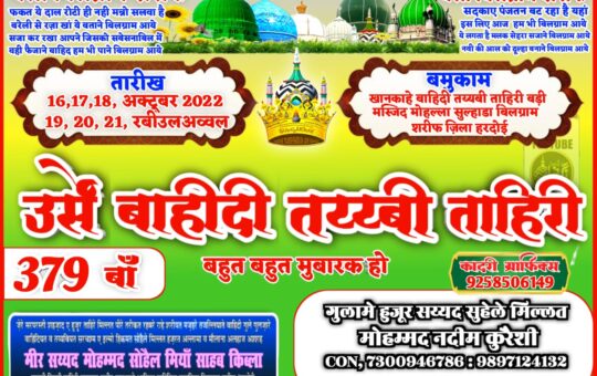 उर्से तय्यबी वाहिदी ताहिरी की तैयारियाँ हुईं शुरू 16-17-18 अक्टूबर 2022 तक चलेगा उर्से तय्यबी वाहिदी ताहिरी का प्रोग्राम बिलग्राम...