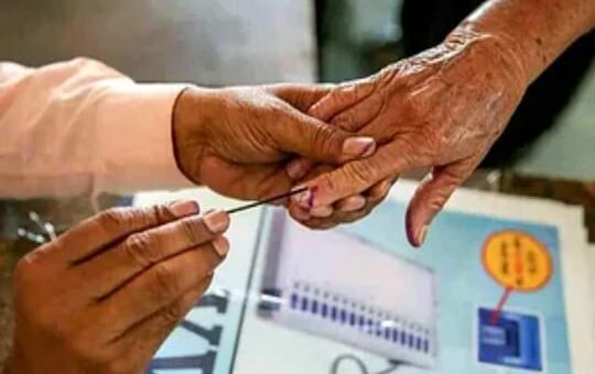 लखनऊ: रक्षा मंत्री राजनाथ सिंह ने गोमती नगर स्टेट स्कॉलर्स होम मतदान केंद्र पर डाला अपना वोट , इस दौरान...