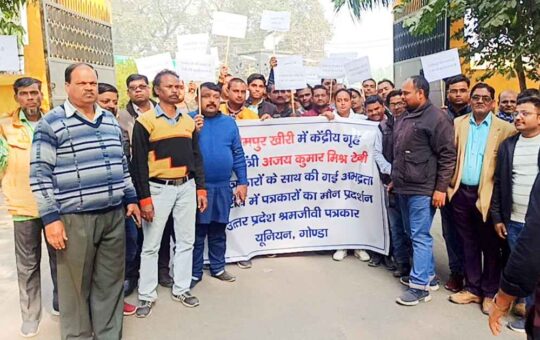 गोंडा। गृह राज्यमंत्री के विरुद्ध पत्रकारो ने मौन जुलूस निकाल उठाई बर्खास्तगी की मांग