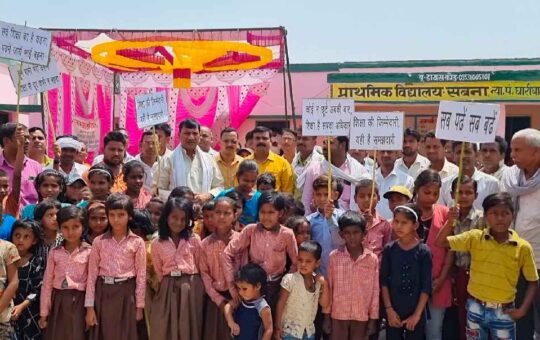 अकबर अली बभनजोत। बभनजोत गोंडा। कोई न छूटे अबकी बार शिक्षा है सबका अधिकार का नारा देते हुए स्कूल चलो...