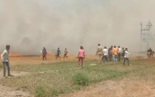 बभनजोत। शॉर्ट सर्किट से लगी आग, ग्रामीणों व पुलिस के जवानों ने आग पर पाया काबू